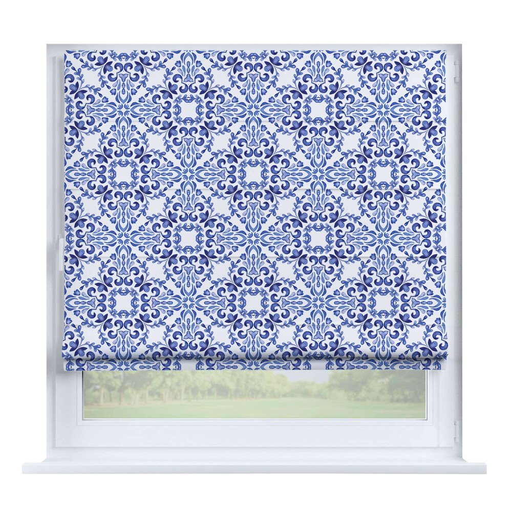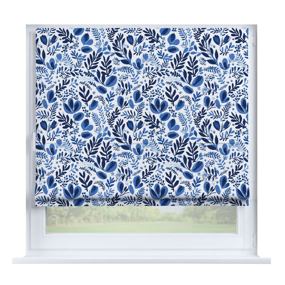 Австрийская штора вельвет васильковый, карниз верёвочный