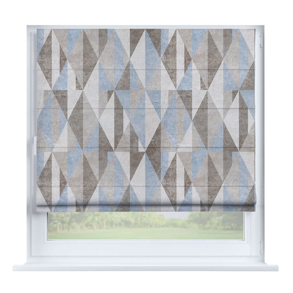 Австрийская штора лён кашемир голубой, карниз верёвочный